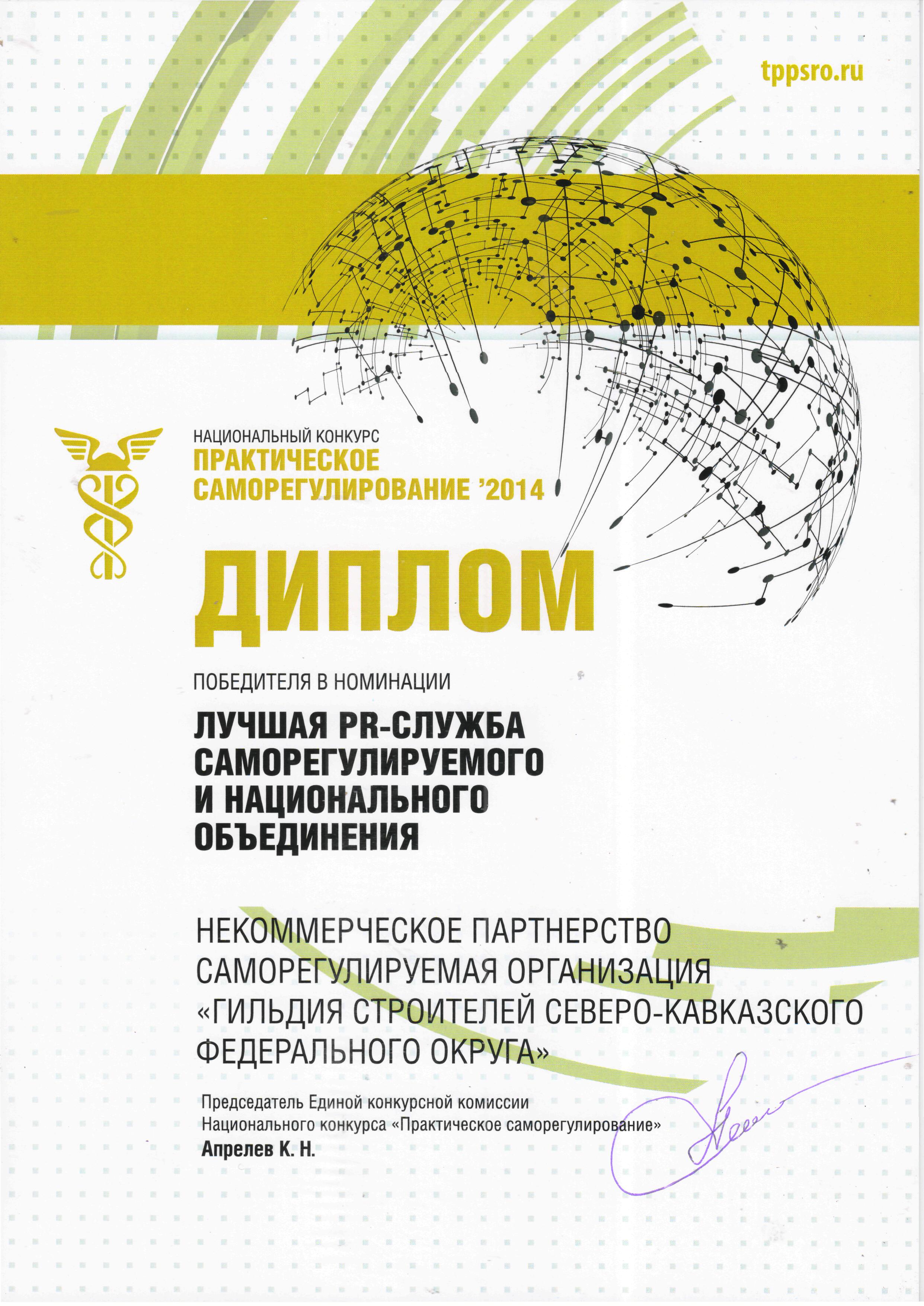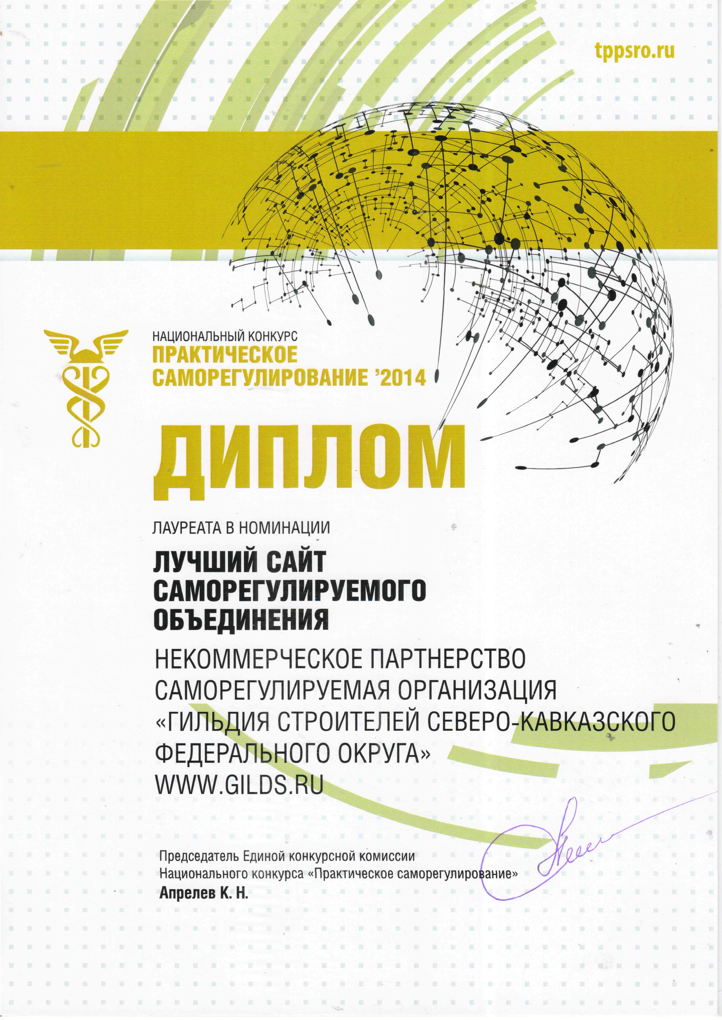 Диплом в номинации «Лучший сайт саморегулируемого объединения – 2014» (3-е место);