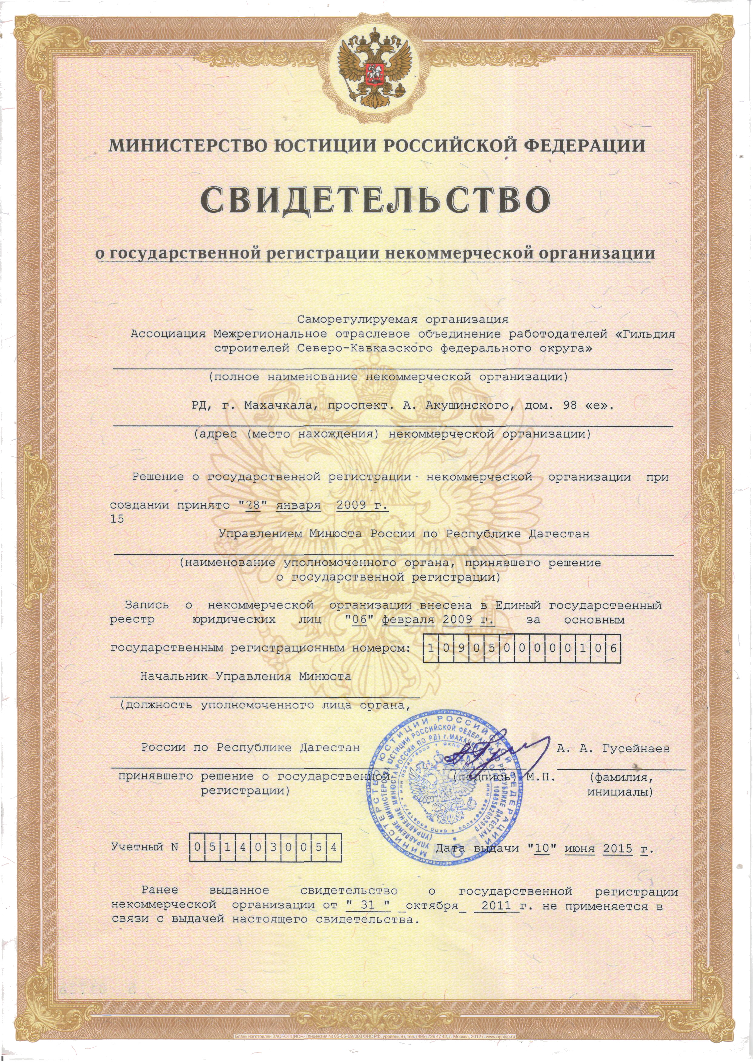 Свидетельство о государственной регистрации некоммерческой организации